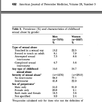 In one study about childhood rape the researchers found that boys were more often the victims of actual childhood rapes than the girls. Then in writing up their research failed to specifically include this information about boys as victims of rape. Furthermore, when they went to the media they also failed to mention the fact that they have found that boys were raped more often than girls. Gynocentrism.